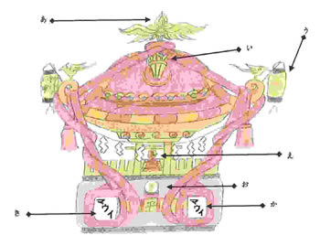 Mainly, the Maui Mikoshi was colored in red since it is the color of Lahainaluna High School. Also, its ornaments were colored in gold. The shape of the Maui Mikoshi is traditional because it was designed as a symbol of mikoshi in each region of Japan. Hence, we focused on maintaining the traditional shape of Japan’s mikoshi. Then, we decorated our mikoshi with the unique ornaments, so that people can recognize that it is the Maui Mikoshi at first glance.