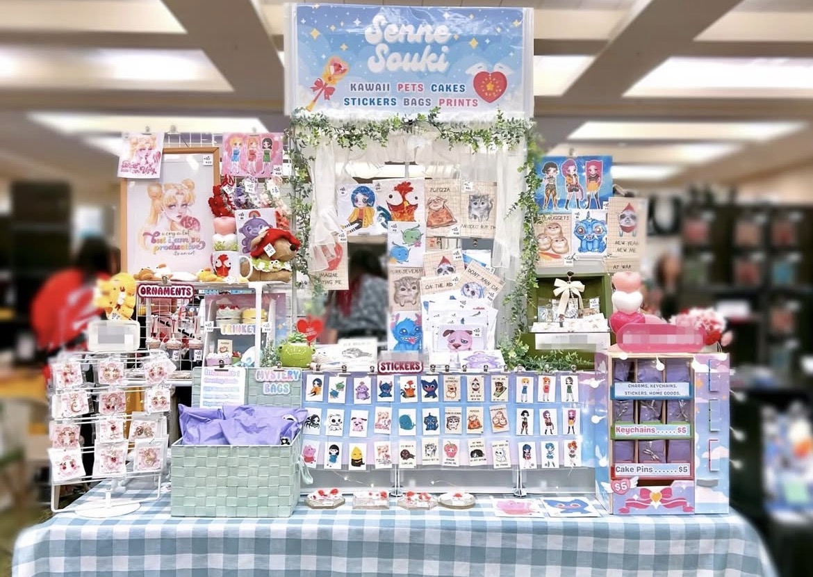 Senne Souki is a Hawai’i based artist creating cute and custom artworks from digital and traditional painting. Her work ranges from handmade art prints, stickers, ornaments, trinket trays, bookends, and paintings on canvas.