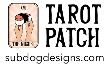 We create Tarot card-inspired local food designs (e.g., musubi, shave ice, laulau). We print and heat-press the designs onto baby onesies, socks, t-shirts, tote bags, pouches, etc. at home in our living room.