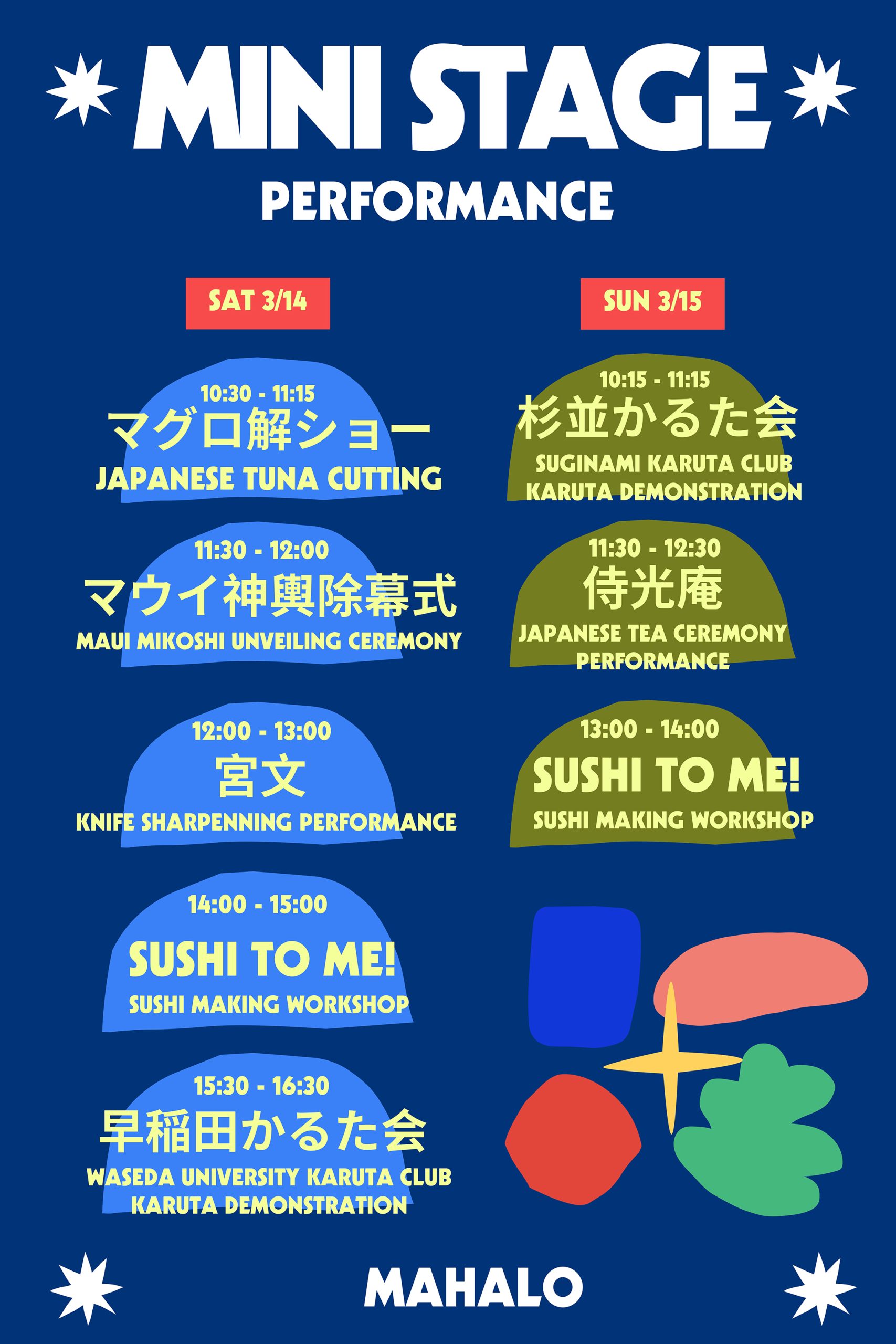 The stage performance schedules for Saturday, March 14 and Sunday, March 15 at the Hawaiʻi Convention Center have also been released, highlighting cultural performances throughout the weekend.