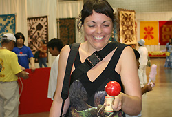 地元ローカルの子供たちや観光客の皆さんにとっては、ずらりと並んだ見たことのない日本のオモチャを前にして、好奇心を刺激される様子。大人も子供たちに混じって思わず参加する姿も見られました。カナダから観光で来ていたお遊び好きなタラノバさんは、けん玉に初めて挑戦。何度も何度も試して、最後には玉をしっかりキャッチできるようになっていました。彼女は、「ここにいる人みんなが笑顔で、温かくてとってもアットホームを感じるわ。」と絶えず笑顔で楽しんでいました。縁日は日本人でなくとも、子供のころの懐かしさを感じさせてくれるものがあるのかもしれません。